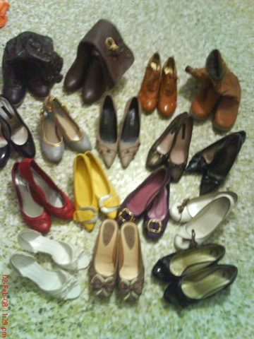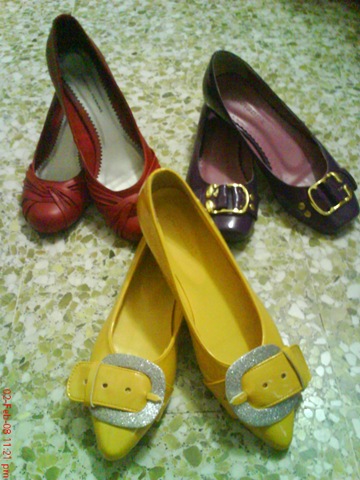 tada... Finally...i'm here to blog le... after so long... new year shopping was quite rush this year... coz i'm working...actually for the past three year...new year shopping were quite rush... let's see wat i have for this new year... for bottom onli a pair of jean lar...every year the same de... tada~ threw away 6 pair of shoes this year... and these are some of my remaining shoes... tired~ it's time to study for exam le.. haix...